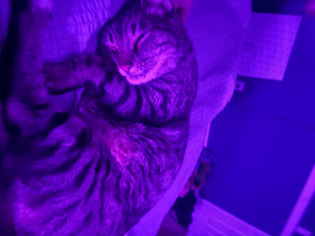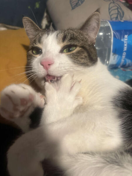 ? Years old. He came up to my house and let himself in ~3 years ago, I let him go in the morning and he kept coming back. He's a fucking fatass even though I try not to over feed him. Very nonchalant cat, likes his alone time, but doesn't mind being pet. He snuggles on occasion and is a very friendly cat overall :3